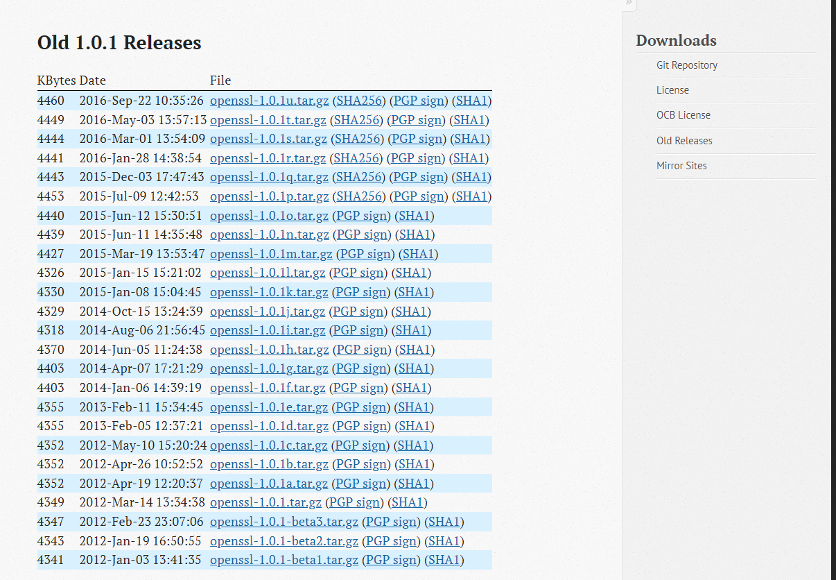 1. https://www.openssl.org/source/old/ 에 접속하여 필요한 버전의 링크로 이동한 후 해당 파일을 다운로드 받습니다.